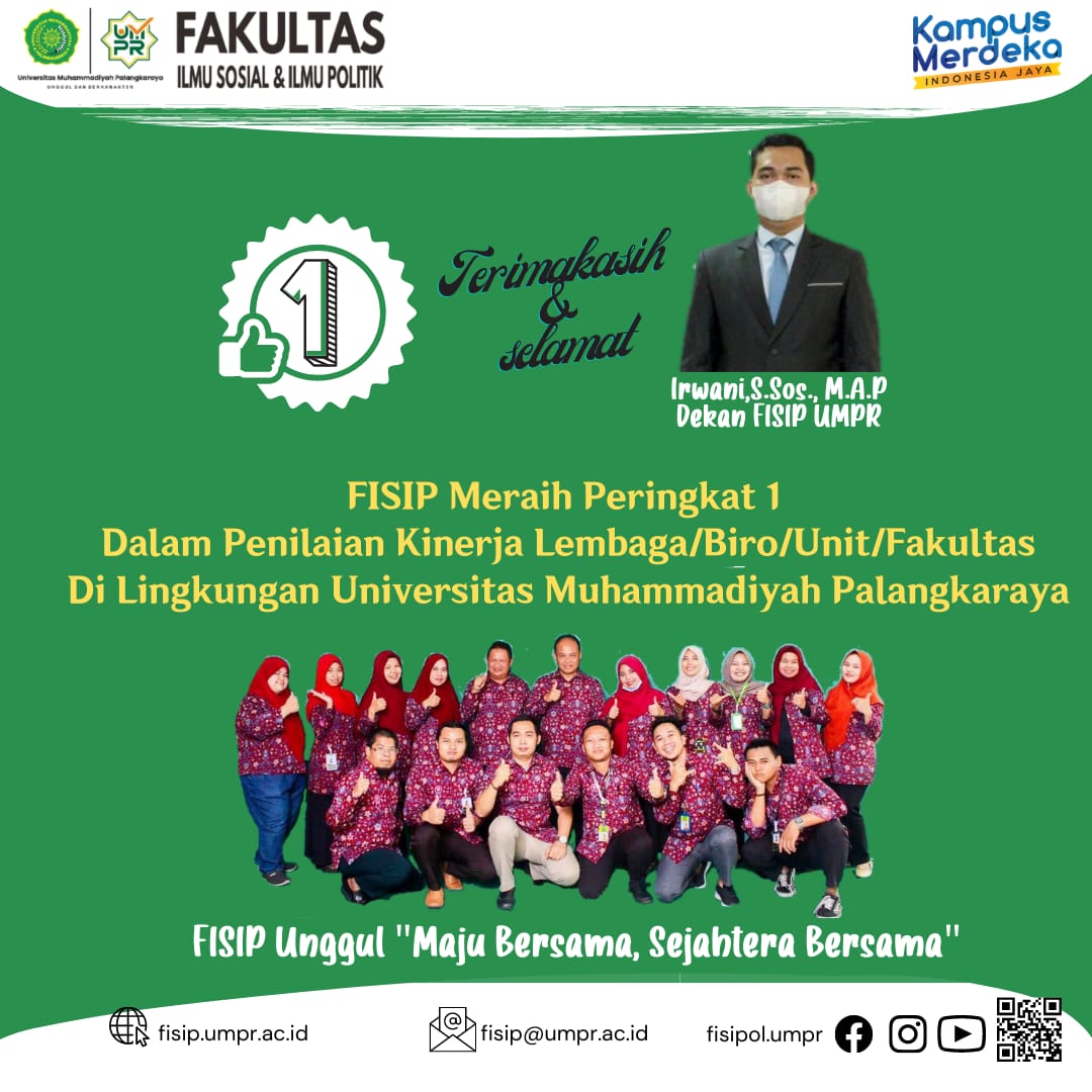FISIP menduduki peringkat 1 dalam penilaian lembaga/biro/unit/fakultas di lingkungan Universitas Muhammadiyah Palangkaraya Tahun 2021. Selain itu, Pegawai baru dan lama FISIP juga mendapatkan TOP 5 dalam penilaian kinerka tersebut. Adapun pegawai lama yang mendapat TOP 3 yakni Ainun Jariah,S.Sos.,MAP dan Pegawai lama yang mendapat TOP 5 yakni Nova Riyanti,S.Sos.MAP Penilaian ini disampaikan pada Rapat Kerja...Read More