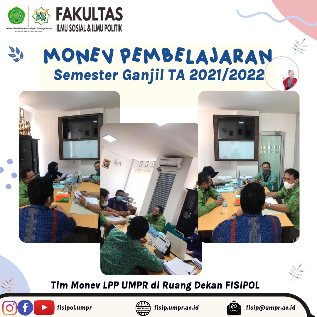 Kepala LPP UMPR yang baru Dr.Ady bersama TIM melaksanakan Monitoring Pembelajaran Semester Ganjil TA.2021/2022 ke Fakultas Ilmu Sosial dan Ilmu Politik UMPR jam 8.30 WIB di Ruang Dekan FISIPOL. Irwani,S.Sos.,M.A.P selaku Dekan, mengawal para Ka.Program Studi yang menyampaikan proses dan penyampaian pelaksanaan pembelajaran dengan menunjukkan bukti berupa dokumen yang relevan. Tutur berhadir dalam kegiatan ini,...Read More