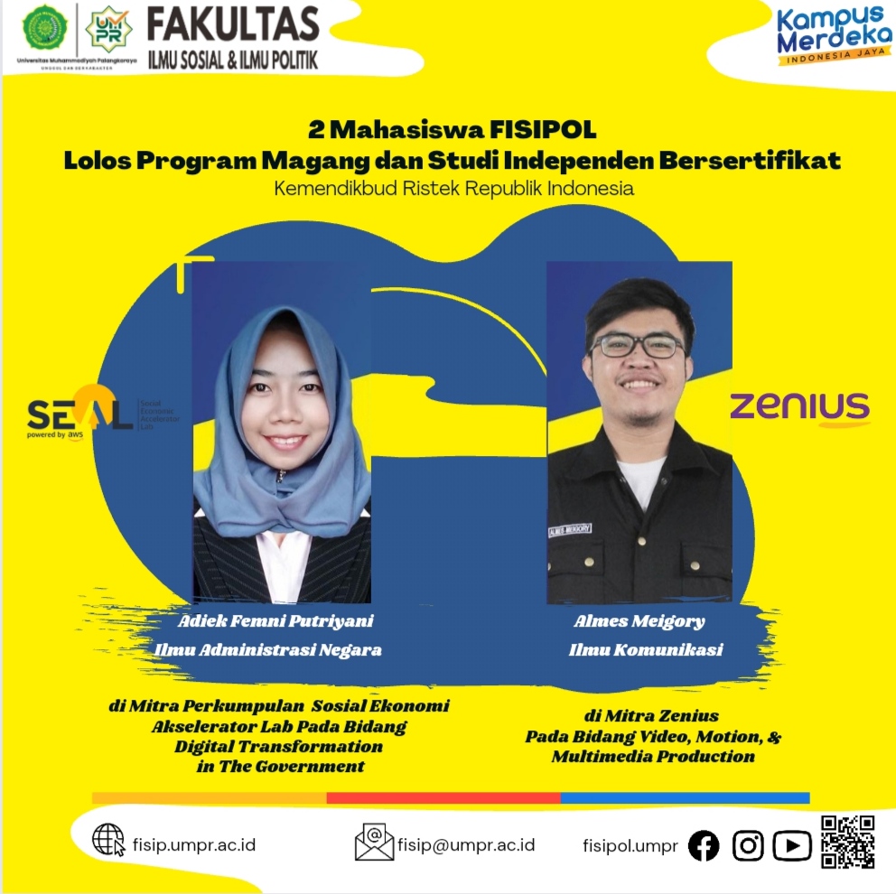3 Mahasiswa FISIPOL Lolos Program Magang dan Studi Independen Bersertifikat (MSIB) Kampus Mederka. 2 mahasiswa tersebut Berasal dari Program Studi Ilmu Administrasi Negara dan Mahasiswa berasal dari Program Studi Ilmu Komunikasi. Prestasi Mahasiswa FISIPOL ini juga mengharumkan nama UMPR yang mendorong seluruh mahasiswa untuk menikmati dan berpartisipasi dalam program kampus merdeka. Adiek Feni Putriyanti, Mahasiswa...Read More