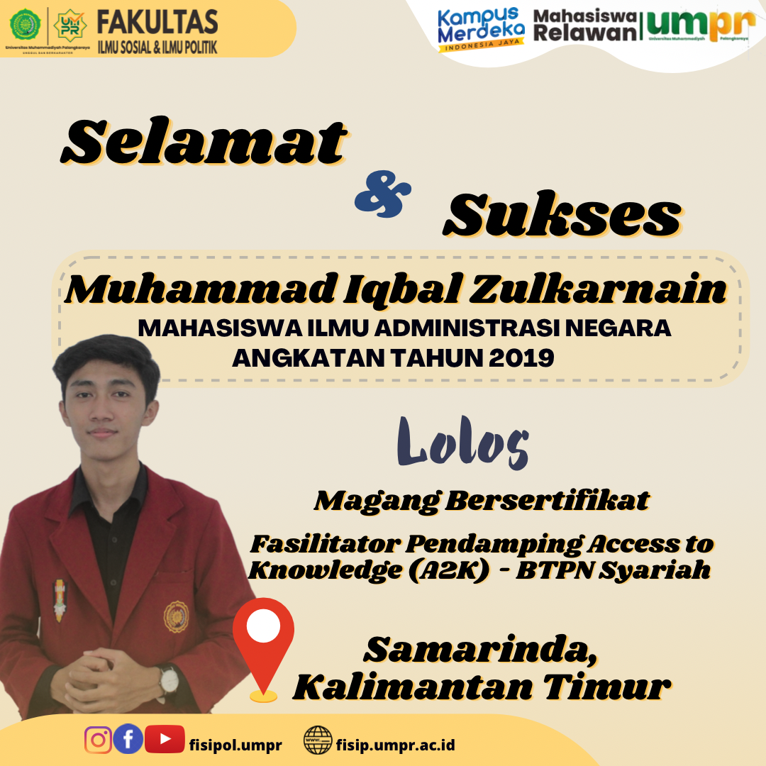Halo, Kawan-kawan FISIPOL Excellence… Kami sangat bangga atas pencapaian kawan-kawan mahasiswa yang terus menerus meraih pengalaman dan prestasi. Kami ucapkan selamat dan sukses untuk Muhammad Iqbal Zulkarnain Mahasiswa Aktif Program Studi Ilmu Administrasi Negara yang Lolos Studi Independen Bersertifikat “Fasilitator Pendamping Access to Knowledge (A2K) – BTPN Syariah” Lokasi ✅ Samarinda, Kalimantan Timur. Kami juga...Read More