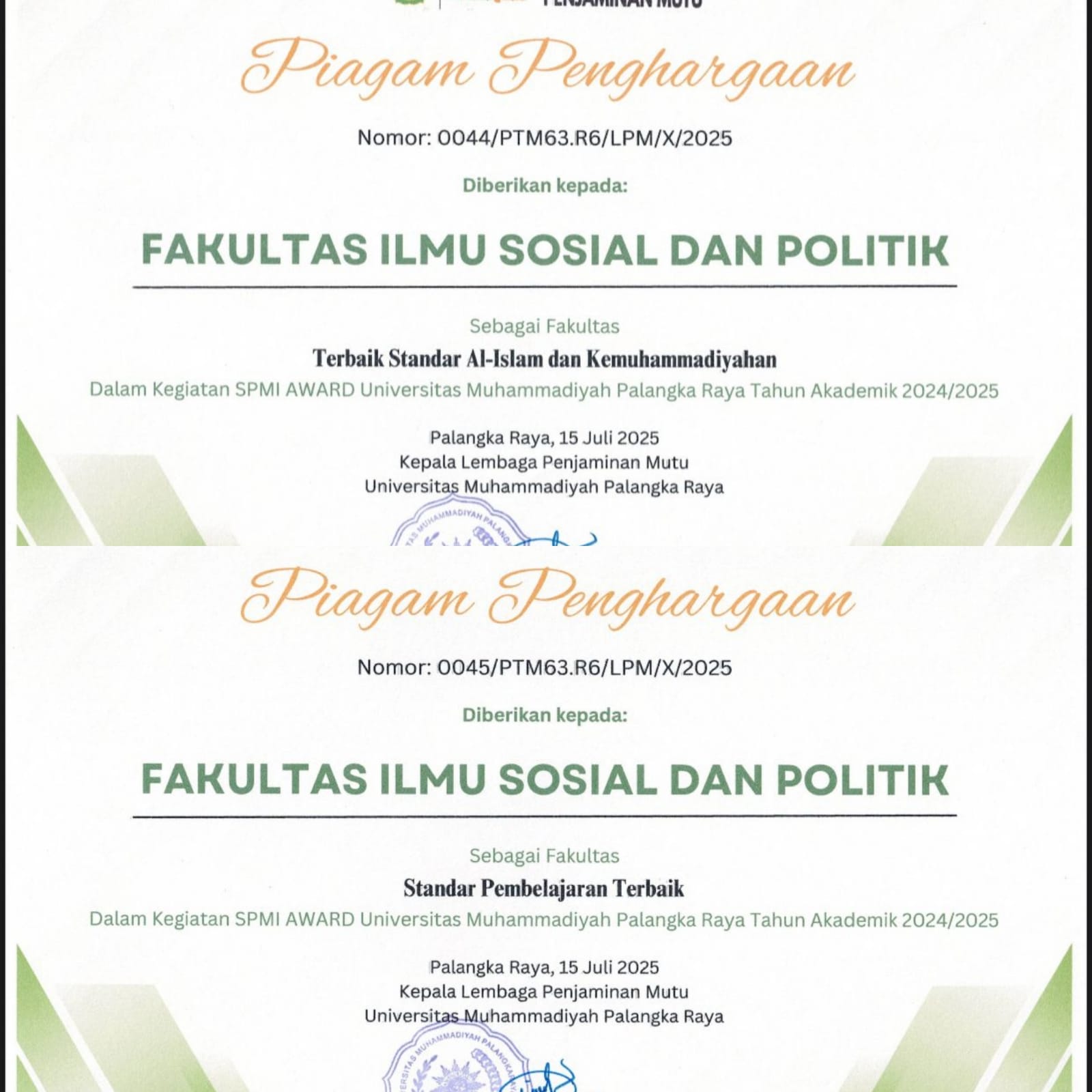 Palangka Raya – Fakultas Ilmu Sosial dan Ilmu Politik (Fisipol) Universitas Muhammadiyah Palangka Raya (UMPR) berhasil meraih dua penghargaan dalam Rapat Koordinasi Pola Perkuliahan dan Pengelolaan Mahasiswa Semester Ganjil Tahun Akademik 2025/2026 yang digelar pada Jumat, 11 Juli 2025. Penghargaan tersebut adalah Standar AIK Terbaik dalam Perkuliahan dan Standar Pembelajaran Terbaik. Ketua Lembaga Perencanaan, Pengembangan,...Read More