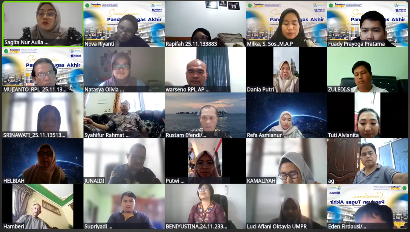 PALANGKA RAYA – Dekan FISIP-ADKOM Universitas Muhammadiyah Palangkaraya (UMPR), Dr. (Cand) Rachmat Hidayat, S.H., M.Ikom menekankan pentingnya standarisasi penulisan tugas akhir dalam kegiatan lokakarya dan sosialisasi pedoman penyusunan tugas akhir yang digelar secara virtual, Kamis (2/4/2026).